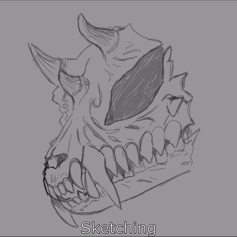 I started off with a sketch, similar to how I started the previous drawing. I also created a new top layer to draw the lineart on. I would keep this lineart layer on the top, so the colours don’t overlap the lines. I tried to keep the lineart minimal for the skull cracks and details, as I wanted the shading to make them stand out.