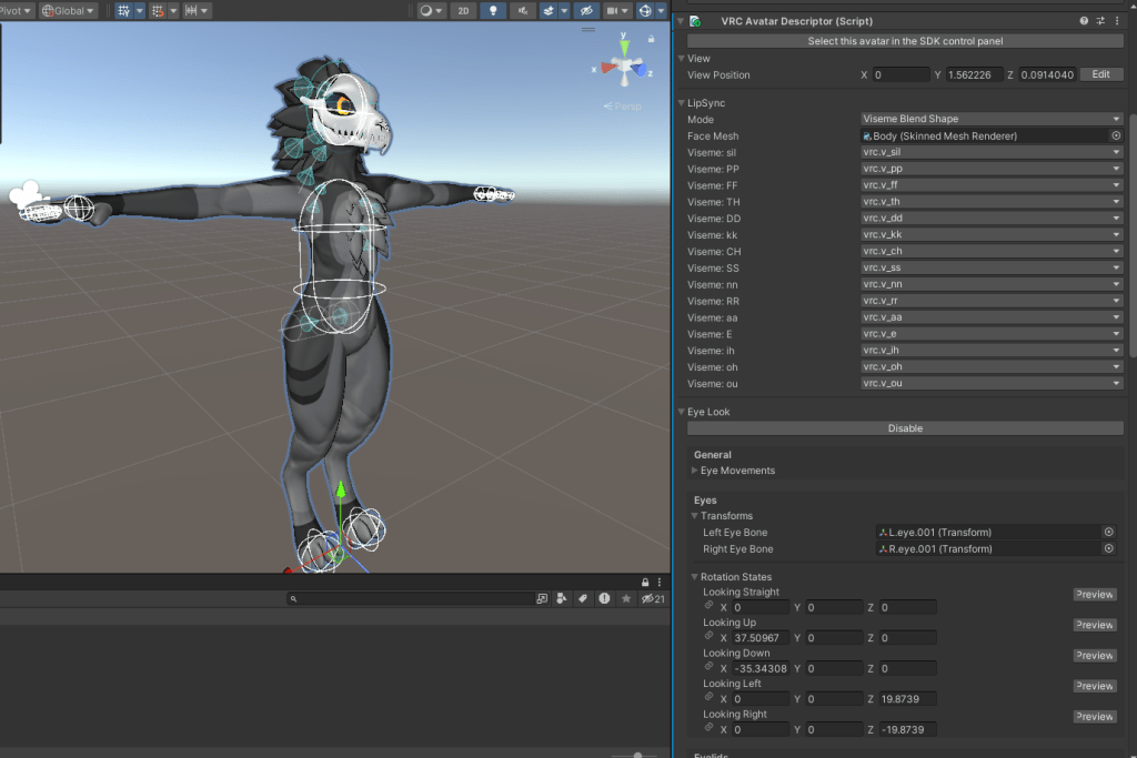 The avatar descriptor component controls all of the main basic features of how the character will react within the social VR game VRChat, such as eye movement, blinking, colliders, viseme mouth movement and holding all of the animator layers and parameters.