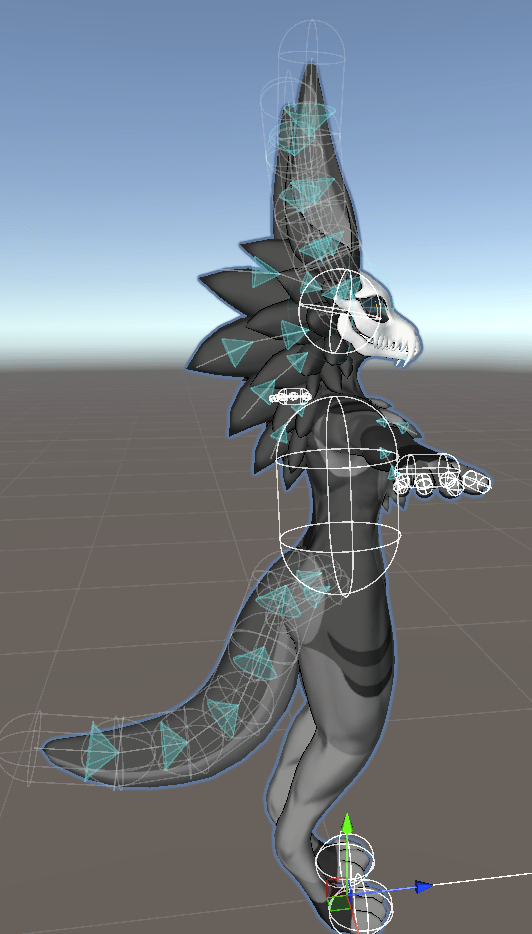 Finally I added phys bone components, which are part of the VRChat SDK. These allow me to add physics to stings of bones. These are great as they add so much more life into your character, and can even be interacted with by yourself and other users in game. They just help bring the character to life a bit more
