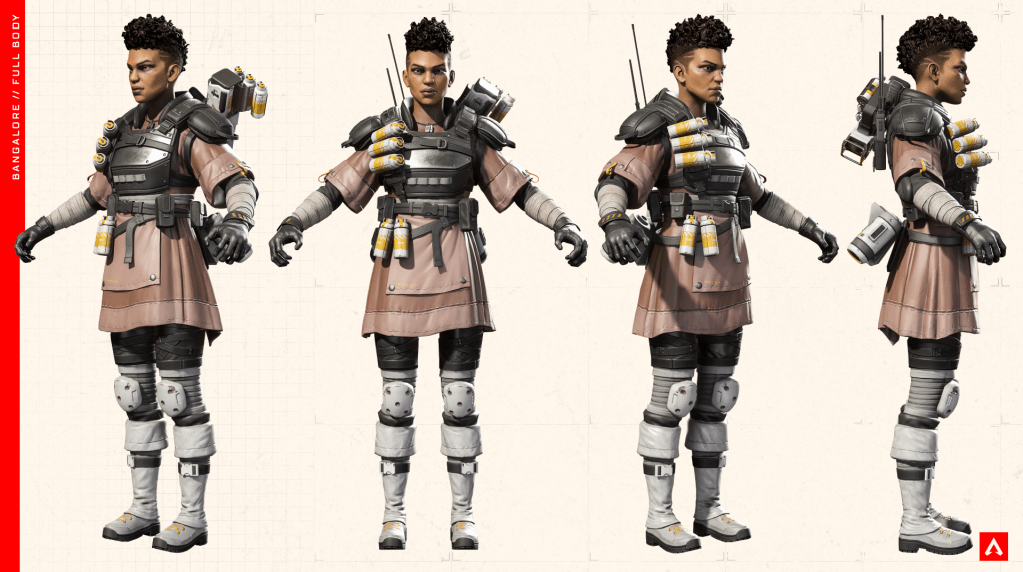 I always love to reference the Official Apex legends cosplay guides as great examples of turnaround sheets. Whilst they are rendered with existing 3D models, an probably not the original concept designs, I still think demonstrate how to show all areas of a character clearly. I also love how professional the pictures are presented, and I also really appreciate how its in a T pose, I think drawing my reference in a similar style will look professional, and really help with the proportions for the model.