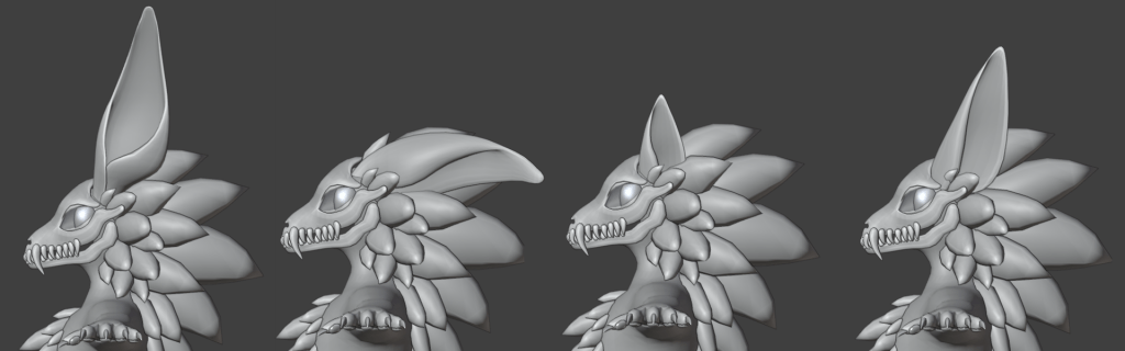 Before I started UV unwrapping, I decided to model some additional tail options, and alternate ear options. In total I have 4 different styles of ear now. This allows people to style their character a bit more. The floppy one gives more mischievous goblin vibes, and the two different sized canid ears give people a bit more of a neutral option if the default pointy ears are too much.