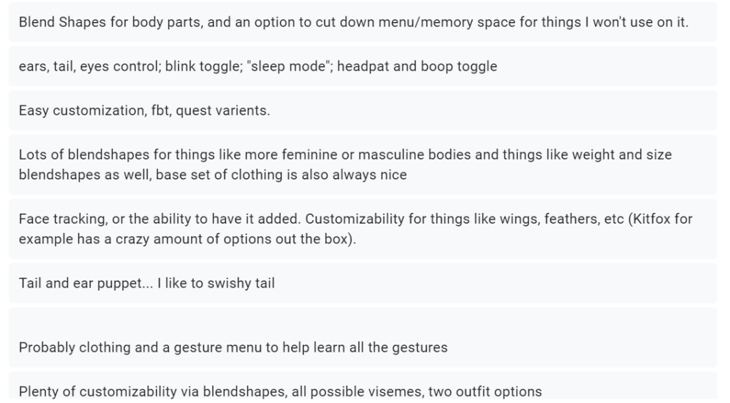 - What features do you like your avatar to have pre set up with?