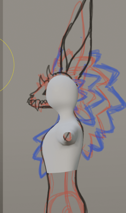 I went over this sketch in a black pen to have a more clear reference for the base body. I used a blue pen to mark out where I want the fluff to be, this will be especially useful for the head area. I also made sure to keep looking back at the Novabeast as a reference as I really like how the headfluff looks on that base model.