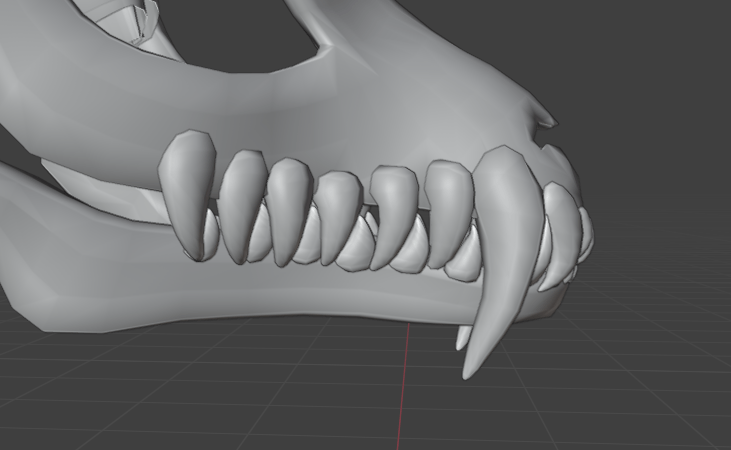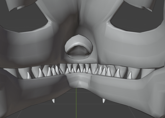 I copy and pasted the teeth, and adjusted the shape slightly. I started to place them on the lower jaw, inbetween the gaps on the teeth from the top of the skull