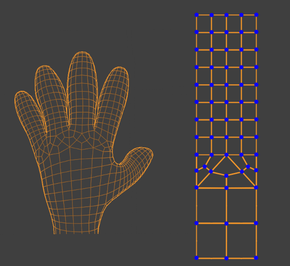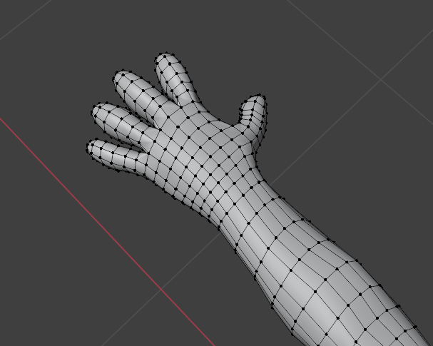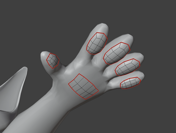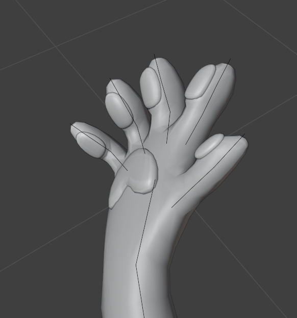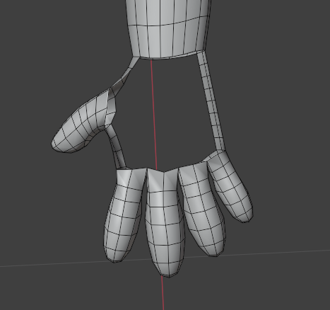 Before I modelled the fingers and completed the hand, I had a look at a the Rexouium avatar base, which I did a case study on earlier. I had a look at the topology on the hands of this base, so I could get a good example of what I may need to do to model my own.