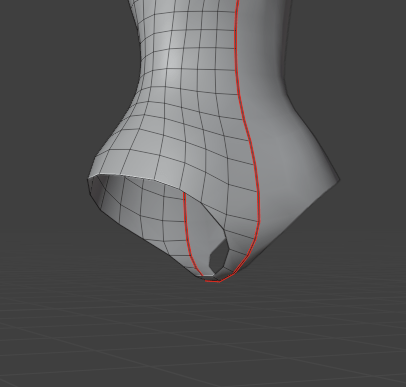 Now that was finished, I started continuing to extrude the body. Once it was the right length, I started filling in and attaching the polygons around the crotch area. I made sure to leave two hole for the thighs to come from.