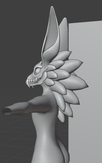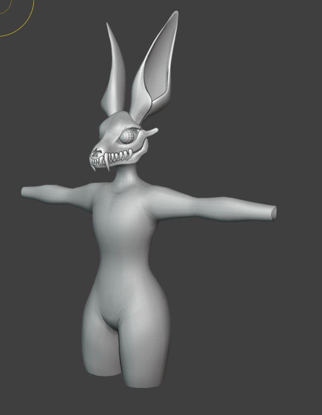 My idea would be to create a 3D model character, which is part of a made up species, similar to the Wendigo. I love the idea of a skull for a face, it adds to the mystery of the model, as you are unable to see what its face truly looks like, what emotions it may be feeling. This 3D model would be fully rigged, low poly with neat topology, lots of customizable shapekeys and options for different body types and features, easy to use UVs to make painting your own version easy, and viseme shapekeys.