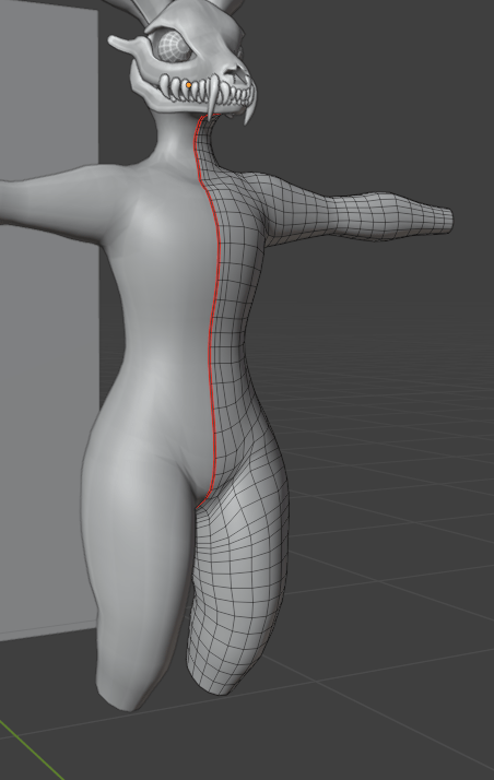 Once I was happy with the shape of the body, I continued extruding the rough shape of the legs