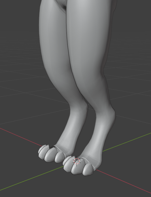 Overall, I was pretty happy with the shape of the legs. I think I had captured the digitigrade effect really well. Next I modelled a rough toe shape, and copy and pasted it four times.