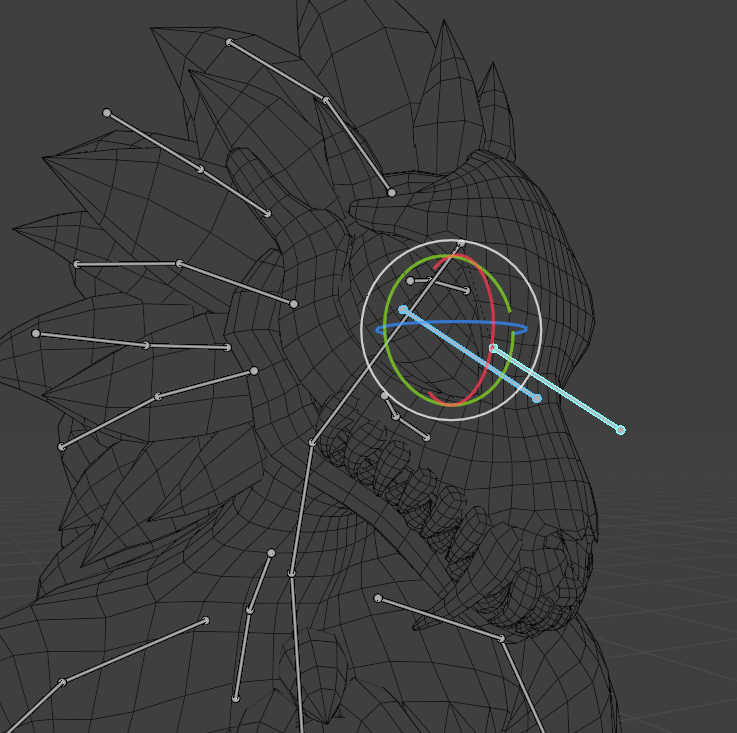Next I had to weight paint the fluff and the eyes. The fluff wasn’t too bad, I just created some rough bones which were parented to the head and neck, and used the radial tool to assign rough weights. These bones dont have full weights on the fluff, this just makes everything blender a bit smoother with the head rotations, but still allows for dynamic movement.