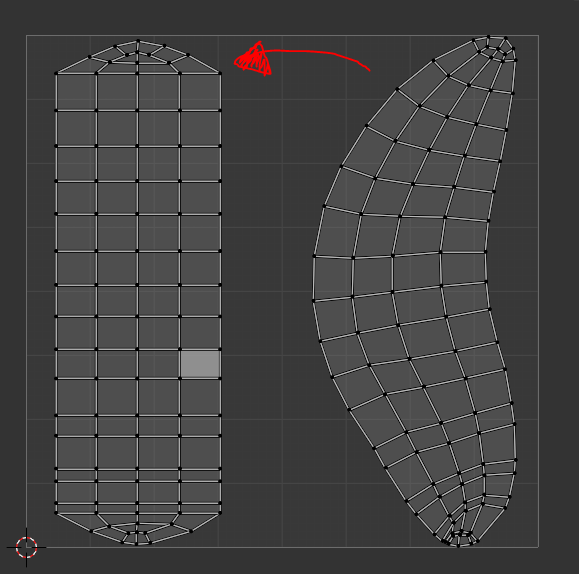 I noticed that if you were to subdivide the main arms topology, and straighten everything out, it would all be in a perfect straight line. by having the right amount of edges around the arm, you can completely avoid tris. The rexouiums hand also uses a fancy method of splitting its two edge loops into four, and it does this whilst maintaining quad topology. I did a little drawing of how this transition was made, just in case I wanted to do a similar strategy, and add more detail to the fingers.