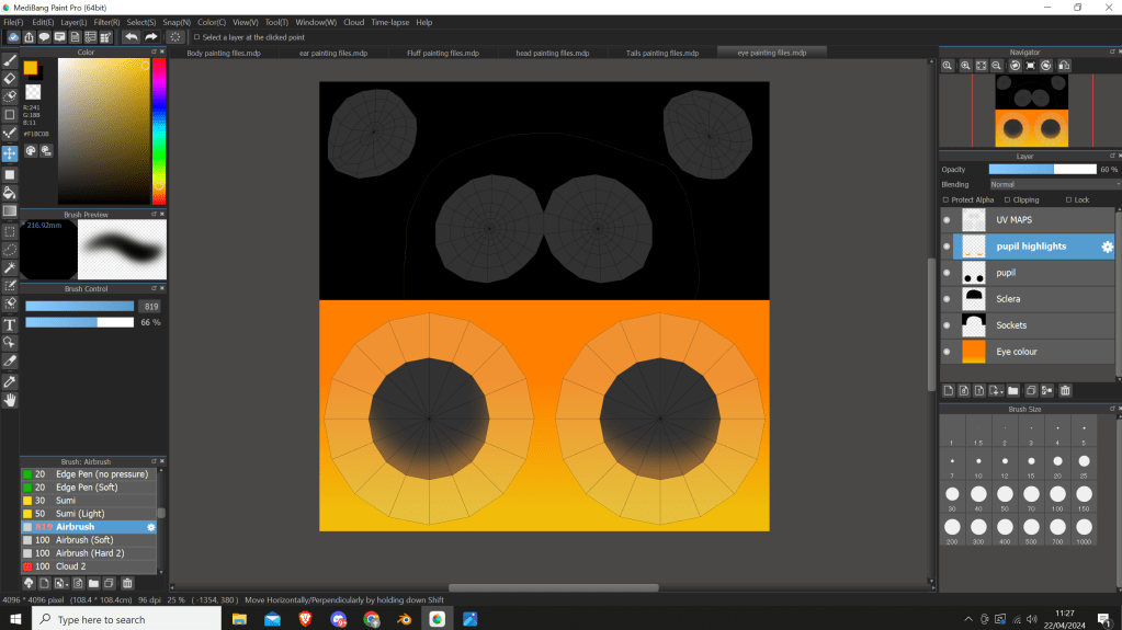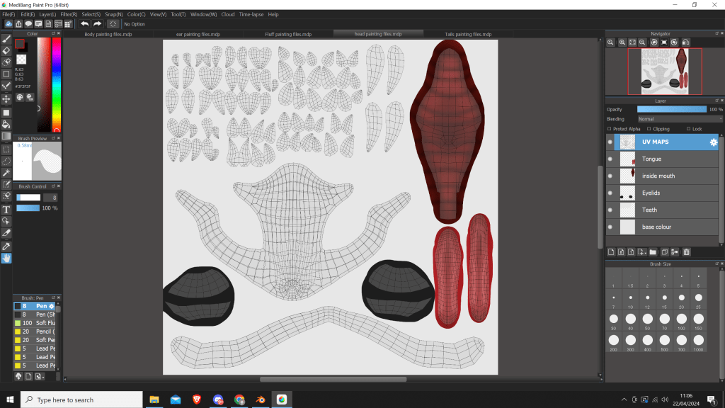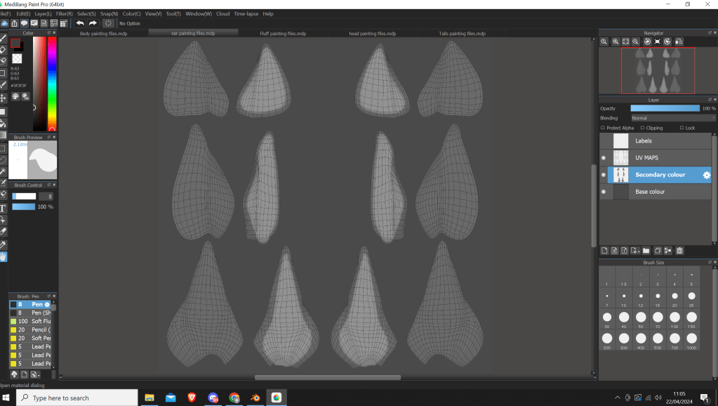 I did also UV unwrap the paw pads and the claws, however I didn’t create any texturing files as I intend to just keep them a solid colour, probably with a matcap effect.