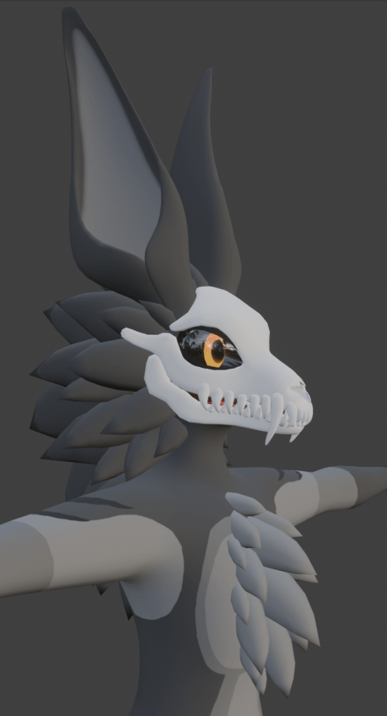 Whilst it can be a bit hard to visualize from these pictures, and I don’t have any visemes set up yet to showcase it moving with the mouth, as You cannot apply modifiers with shape keys, so those will have to come once I have finished the modelling process.