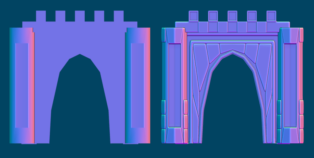 For some of the simpler objects, I just did some simple poly modelling to add bricks, grooves in-between different and sharper edges.