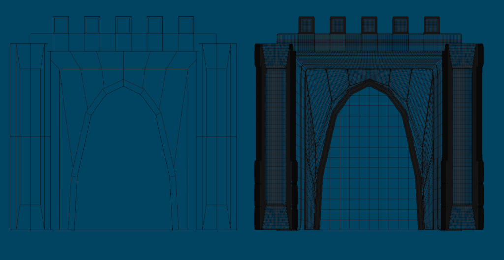 No I have established some wall pieces, floor peices, pillars and other simple decoration pieces, Its time to take that mesh, make it a lot higher poly, and add some extra details. these will be baked onto the lower poly mesh later on.